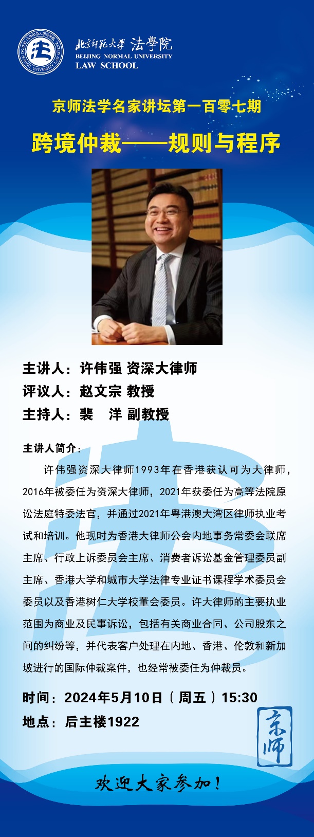 Lecture Preview | 107th Session of BNU Distinguished Jurist Lecture Series: Cross-border Arbitration - Rules and Procedures