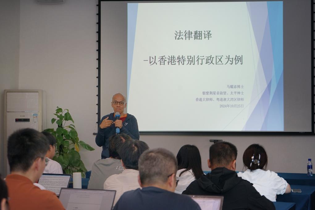 On the afternoon of October 25, 2024, the fourth installment of the Hong Kong Law Lecture Series on "Legal Translation" was successfully conducted at Beijing Normal University's Zhuhai campus. The lecture was delivered by Ma Yaotian, a part-time professor at the Law School of Beijing Normal University, and skillfully moderated by Zhao Wenzong, a chair professor at the same institution. The event was well-attended by a group of master's and doctoral students from Beijing Normal University at Zhuhai.