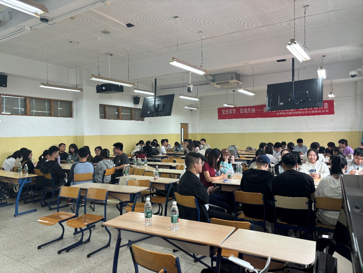 To celebrate the 75th anniversary of the founding of the People's Republic of China, promote the spirit of patriotism, inherit the revolutionary gene, and enhance class cohesion and patriotic feelings, at 2:00 p.m. on September 28, the LL.M. Class of 2024 of the Law School held a revolutionary quality development activity titled "Building Dreams with Party History, Strengthening Class Solidarity - Exploring the Footprints of the Party Congress and Gathering the Power of Youth" in classroom 401 of the Art Building. The purpose of this activity was to promote the revolutionary spirit, inherit the revolutionary gene, enhance class cohesion and patriotic feelings, and provide students with a platform to deeply understand the Party history, improve personal qualities and collective sense of honor.