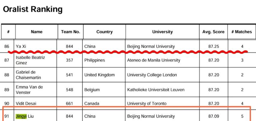Figure 4: Beijing Normal University representative team ranking fourth in the world in the preliminary round