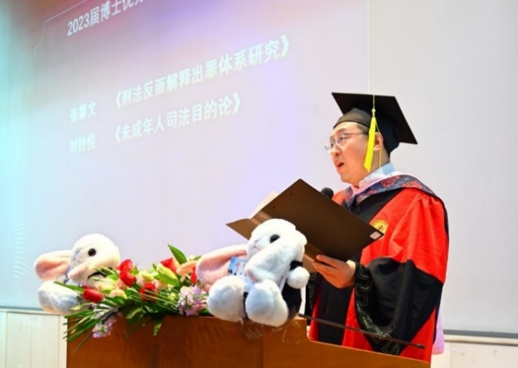Professor Yin Jianfeng, Vice Dean of the Law School, announced the list of outstanding LL.M. and doctoral theses
