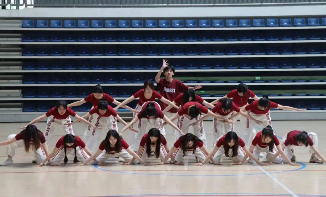 At 10 a.m., the undergraduate group's aerobics competition officially commenced. The lively jumps and spins exemplified the buoyant spirit of the law school contingent. Their faces beamed with smiles, and their movements were both precise and robust, embodying the vibrancy of youth through their graceful postures. Following the morning's heats, our cheerleading squad triumphantly secured a spot in the finals. By 2 p.m., the law school students received resounding applause from the crowd for their outstanding performance, culminating in an impressive eighth-place finish!