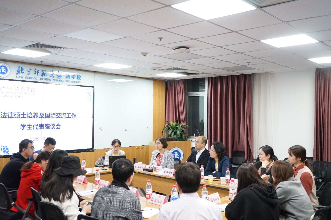 座谈会由张晓婷老师主持。她介绍了本次座谈会的背景和主题,希望与会学生对于学院法律硕士培养以及国际交流方面的工作所存在的问题,提出宝贵意见和建议,请大家畅所欲言。