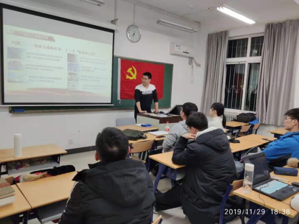 为深入贯彻落实“不忘初心、牢记使命”主题教育精神,进一步强化党员理论知识学习,2019年11月29日晚,High漫画 2019级学硕第一党支部在教四102组织支部党员和积极分子开展了“不忘初心 牢记使命”主题教育会,支部对接教师李响老师出席本次会议,六名党员和四名积极分子参加了本次活动。