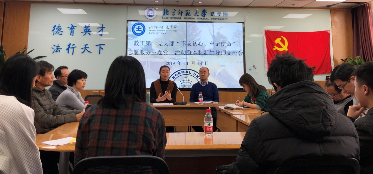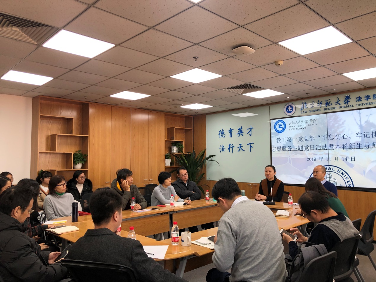 唐璨老师首先介绍了与会人员,并阐明本次交流会的初衷是立足于教师岗位职责为身边的学生进行学业指引,落实“不忘初心、牢记使命”主题教育的党员志愿服务活动,依托教工一支部党员教师的各自专业和行政管理优势,就法学入门、学术能力培养、学业规划以及未来出路等方面,为新生答疑解惑。
