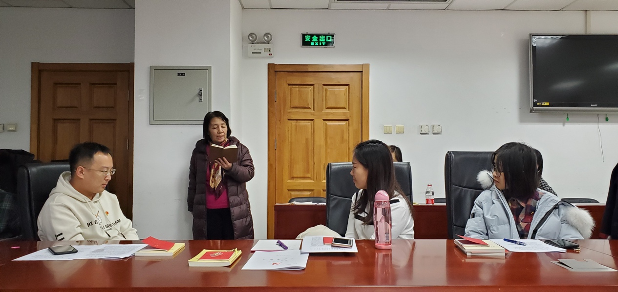在第三个环节,党支部开展“不忘初心、牢记使命”组织生活会,支部书记郭如愿强调,组织生活会是我们党开展批评与自我批评的有力实现方式,其目的是为了“团结-批评-团结”,“批评”本身不是目的,其目的在于“团结”。希望同志们能够认真对待他人批评,有则改之无则加勉。在开展批评与自我批评过程中,一方面加强党支部战斗堡垒作用,使全体党员“红红脸”“出出汗”以提升党性修养,另一方面,不仅为王筱同志,也为与会党员们展现一堂生动的党课。让王筱同志能够尽快感知我们支部的凝聚力与战斗力。郭如愿作为支部书记首先进行了自我批评,郭如愿从党支部活动开展频次及质量有待提升,自身的理论水平有待加强,自己的学术能力有待提升等方面展开了深刻的自我批评。随后,侯怡宁同志、陈海涛同志、陈轩禹同志、杜伟伟同志及黎昭权等同志分别从自身实际情况出发进行了自我批评。组织生活会的顺利开展不仅让大家党性修养得以提升,更增强了大家对党支部的认同感,党支部战斗堡垒作用获得一次直观显现。