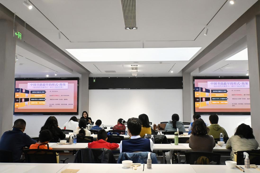 11月29日,教师党员们来到中国书店,开展第二场传统文化实践。大家跟随讲解了解古籍装帧的演变历程,近距离观摩修复师“修旧如旧”的精湛技艺。从铺纸、补缺,到抚平、压实,每一个步骤都需静心凝神、严谨规范。随后,在修复师的指导下,党员们亲手体验古籍修复的基础操作,用镊子、糨糊与补纸,让历经200多年岁月的残破书页“重获新生”,深刻体会到文化赓续的艰辛与价值。