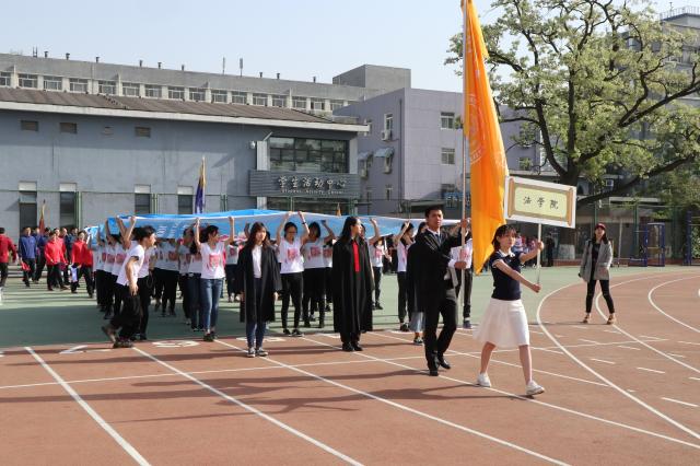 40名身着蓝色和红色运动服组成的High漫画 教师方队紧随其后。他们手上挥舞着国旗和院旗,代表了爱国与法治的结合,显示着一代法学人正身明法,励精图治的决心和气质。