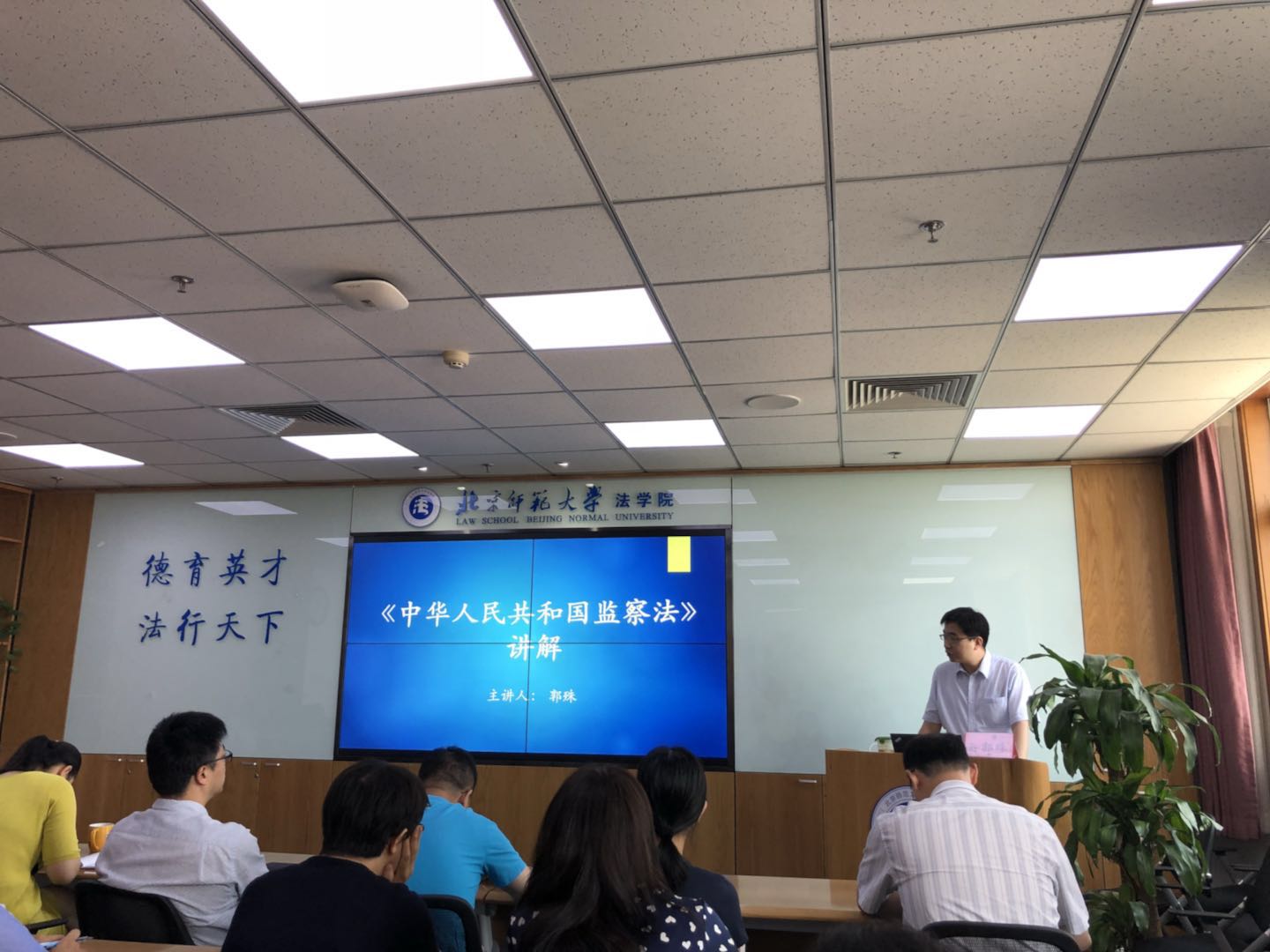 十八届中央纪委第七次全体会议指出:“要积极稳妥推进国家监察体制,加强统筹协调,做好政策把握和工作衔接”。为响应学校党委关于开展全面从严治党教育宣传月活动的要求,High漫画 党总支面向全体党员师生,于2018年6月20日上午10点在后主楼1922会议室组织开展系列学习教育活动之《监察法学习解读》专题讲座,邀请High漫画 郭殊副教授为党员师生进行关于《中华人民共和国监察法》的详细解读。High漫画 党总支书记梁迎修教授担任本次讲座的主持人。