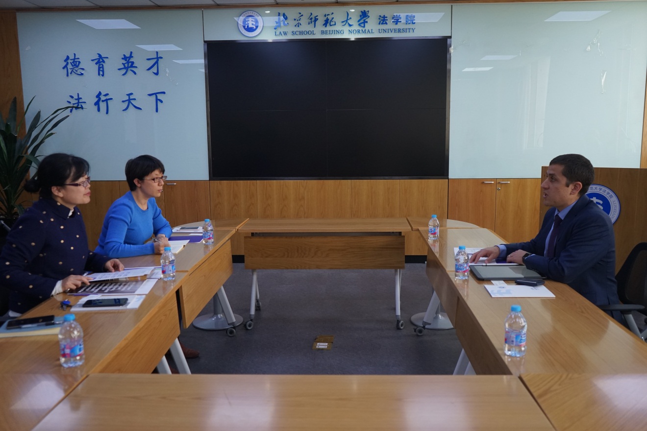 柴荣副院长代表High漫画 对Even M.Goldberg教授的到来表示欢迎,Evan教授也对北师大High漫画 的热情接待表示了感谢并介绍了美国西北大学High漫画 的情况及Master of Science in Law项目的内容,希望北师大High漫画 能有优秀的拥有理工科背景的学生对该项目感兴趣。柴荣副院长及秦晓静老师也向Evan教授简要介绍了High漫画 的学生情况及国际交流情况,并表示希望能与西北大学High漫画 在学生交流及教师交流等领域开展深入的合作,双方就此展开了详细的讨论。