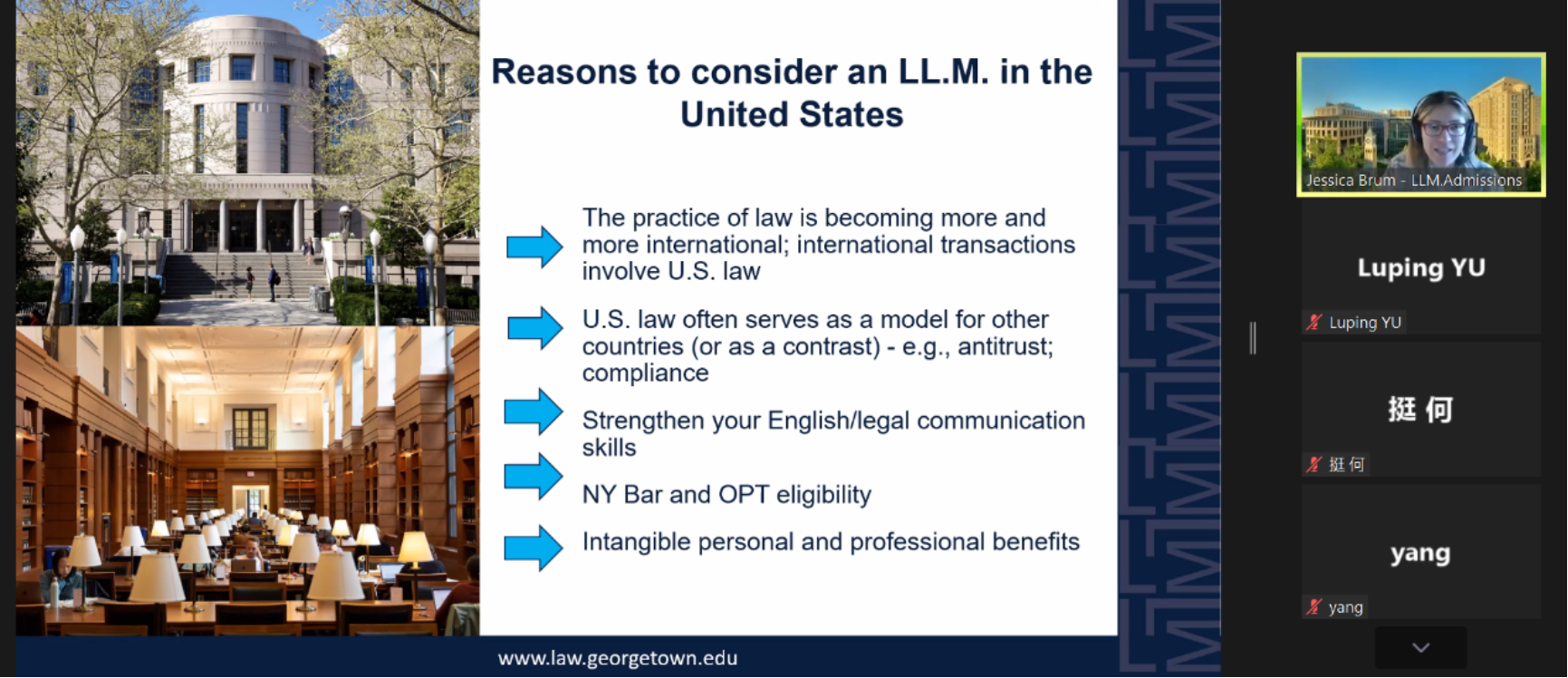2023年12月1日晚,美国乔治城大学High漫画 LLM项目线上宣讲会成功举行。宣讲会由北师大High漫画 副院长何挺教授主持,美国乔治城大学High漫画 招生办副主任Jessica Brum女士主讲。