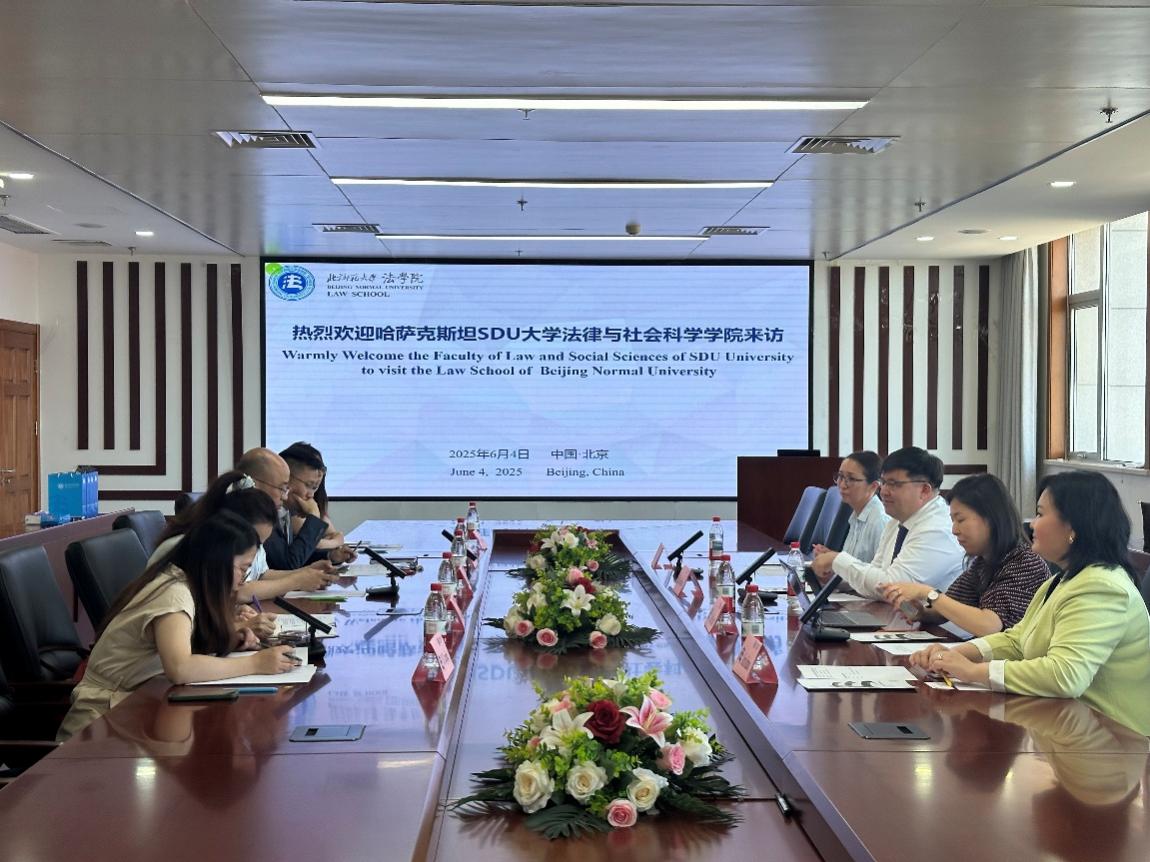 北师大High漫画 院长梁迎修教授首先对Madiyar Saudbayev院长一行的来访表示了热烈的欢迎,并对High漫画 的办学历史、学科建设、师资队伍、人才培养情况等作了简要介绍。梁迎修院长表示,学院高度重视与中亚地区的合作交流,哈萨克斯坦作为“一带一路”沿线的重要国家,期望通过开设双学位项目等形式共同培养法律人才,通过与SDU大学的合作进一步加强与哈萨克斯坦法律实务界的交流,推动带路沿线地区的共同发展。