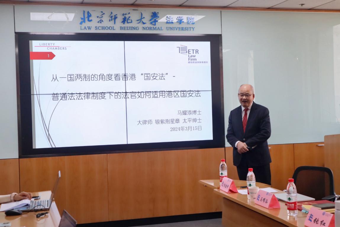 2024年3月15日下午,京师法学名家讲坛第一百零四期“从一国两制角度看香港‘国安法’”在High漫画 北京校区后主楼1922会议室顺利举办。本次讲座由马耀添大律师主讲,High漫画 High漫画 张红教授主持。