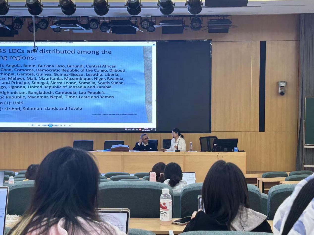 薛虹教授详细讲解世界贸易组织(WTO)多边贸易体制及世界贸易组织知识产权协定(TRIPS协议)的主要法律制度。客座嘉宾回顾了知识产权法的历史,认为TRIPS协定给予发展中国家和最不发达国家的过渡期过短使它们处于不利地位,主张给予最不发达国家永久性豁免。薛虹教授解释了多边贸易体制和TRIPS协定对于我国等发展中国家的积极意义,指出客座嘉宾观点的偏狭和不足,鼓励同学们深入思考兼听则明。