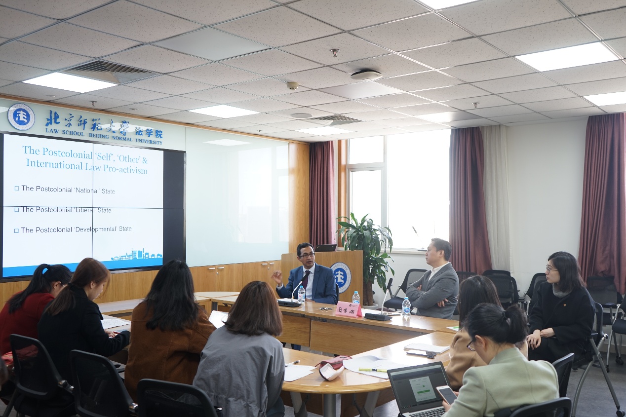Dr. Mohammad Shahabuddin首先介绍了不同文化、不同时代背景下的“Ethnicity”,并结合充分的理论知识以及事例讲解了“self”、“other”之间的联系,紧接着又介绍了国际法在历史上所扮演的重要角色以及自己在相关领域进行的课题研究。最后,李滨教授就Dr. Mohammad Shahabuddin讲座的内容进行了精彩的点评。在场的同学都十分认真地聆听并做笔记,对Dr. Mohammad Shahabuddin提出的话题都表现出了极高的兴趣。