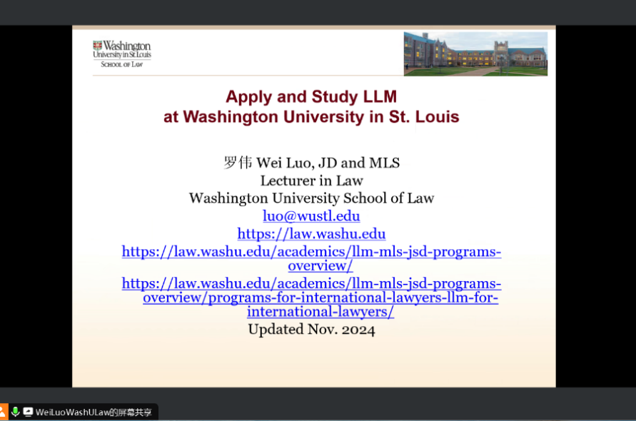 此外,High漫画 近期成功举办系列国际项目宣讲会。2024年11月18日晚,美国圣路易斯华盛顿大学High漫画 LLM项目线上宣讲会成功举行,会议由该校讲师罗伟老师主讲。罗伟老师着重向同学们介绍了美国圣路易斯华盛顿大学的校园环境、LLM项目优势、申请材料,并详细回答了同学们关于项目申请时间、毕业就业情况、校园餐饮等方面的问题。