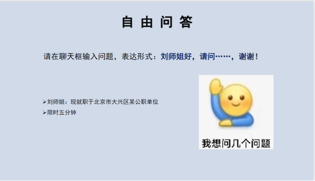 此外,师姐还热心回应了许多同学关注的选调考试备考心得,如选岗考虑、备考心态调整、大兴区工作环境等问题,解答了同学们的疑问。