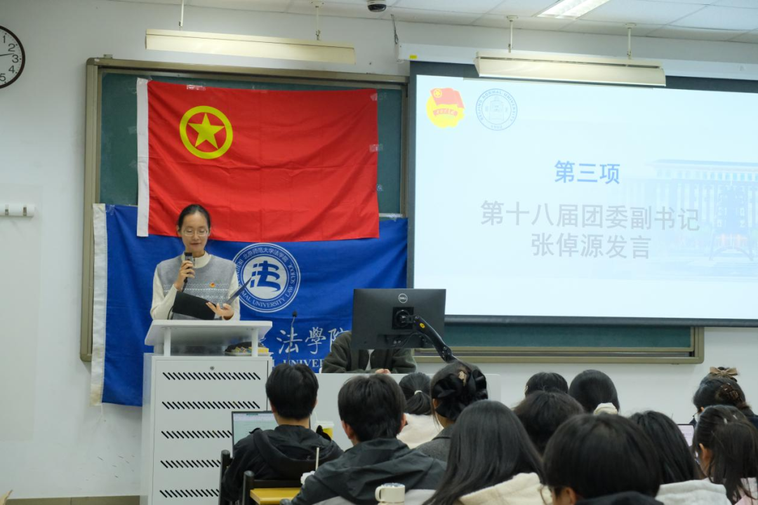 第十九届团委副书记李心孜在发言中致敬前辈、感怀使命,分享三点感悟:困难是成长“催化剂”,细节是质量“生命线”,团队是共赢“共同体”,并承诺做好协调“桥梁”。最后鼓励新伙伴,愿携手在服务与传承中书写青春篇章。