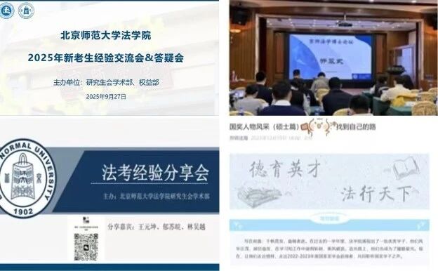 学习有道,方法先行。有效的学习方法既来自经验的传递,也源于榜样的带动与实践的引导。为此,我们围绕三大路径展开系列学业活动:经验传承,共话成长:通过“新老生大型经验交流会(研究生)”“法考经验交流会”及“法硕期末经验交流会”等活动,促进跨年级经验分享,助力学业衔接与方法启蒙;榜样引领,激发动力:开展“国奖人物系列专访”、“萌新看法”学术讲座以及“京师法学博士论坛”,以优秀典型为标杆,拓宽学术视野,激发向上动力;方法指引,实战提升:推出“习法有道”法学学习工具推荐、专业书单系列推荐,并组织法律英语与文献阅读打卡活动,推动学习方法落地实践,获得同学们的广泛参与和积极反响。