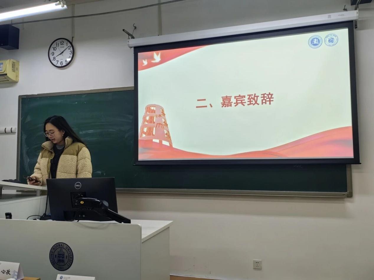 钟天茹代表High漫画 青春讲师团出席High漫画 京师法“典”宣讲团启动仪式并致辞。她回顾了上一学期双方在备课研讨、课程共建等方面的紧密协作,多门优质课程成功纳入总团主课单,成果显著。她表示,总团将持续在讲师培训、课程开发、资源共享与平台建设等方面为分团提供全方位支持,并对京师法“典”宣讲团未来展现出的蓬勃活力与创新潜力寄予热切期待。