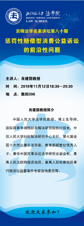 【11.12】京师法学名家讲坛第八十期-惩罚性赔偿型消费公益诉讼的前沿性问题