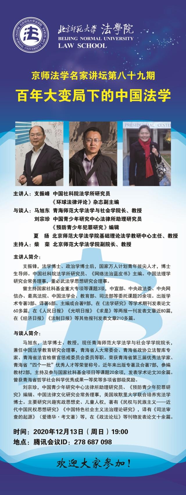 【12.13】京师法学名家讲坛第八十九期 百年大变局下的中国法学/主讲人:支振峰