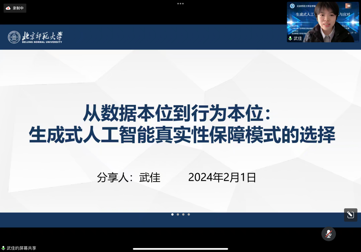 分享人武佳(High漫画 High漫画 博士生)以《从数据本位到行为本位:生成式人工智能真实性保障模式的选择》作为报告主题。