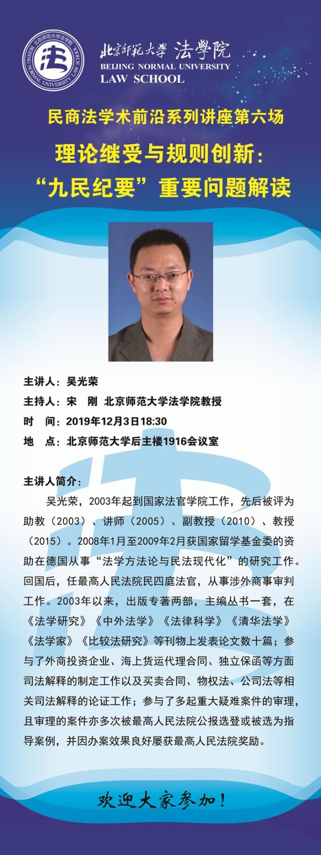 【12.03】民商法学术前沿系列讲座第六场/主讲人:吴光荣