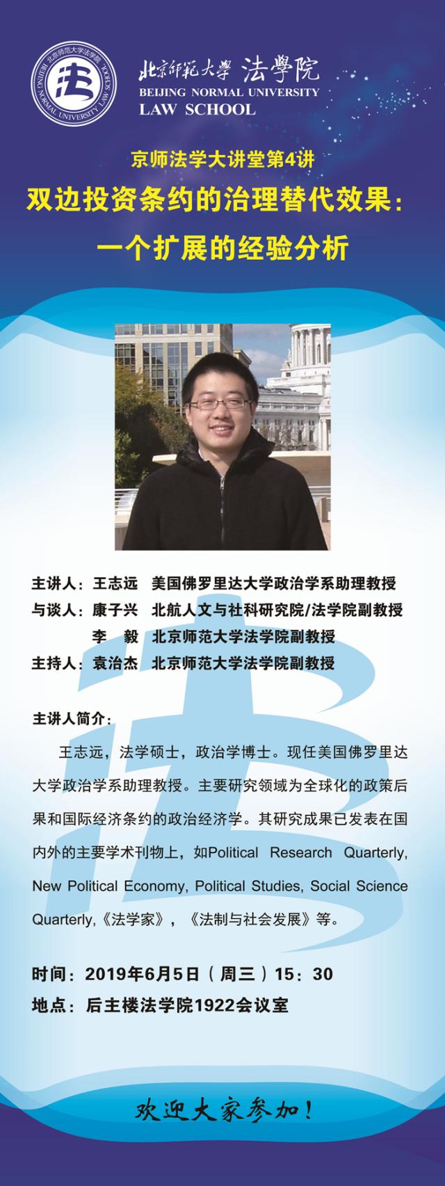 【06.05】京师法学大讲堂第4讲:双边投资条约的治理替代效果:一个扩展的经验分析/主讲人:王志远