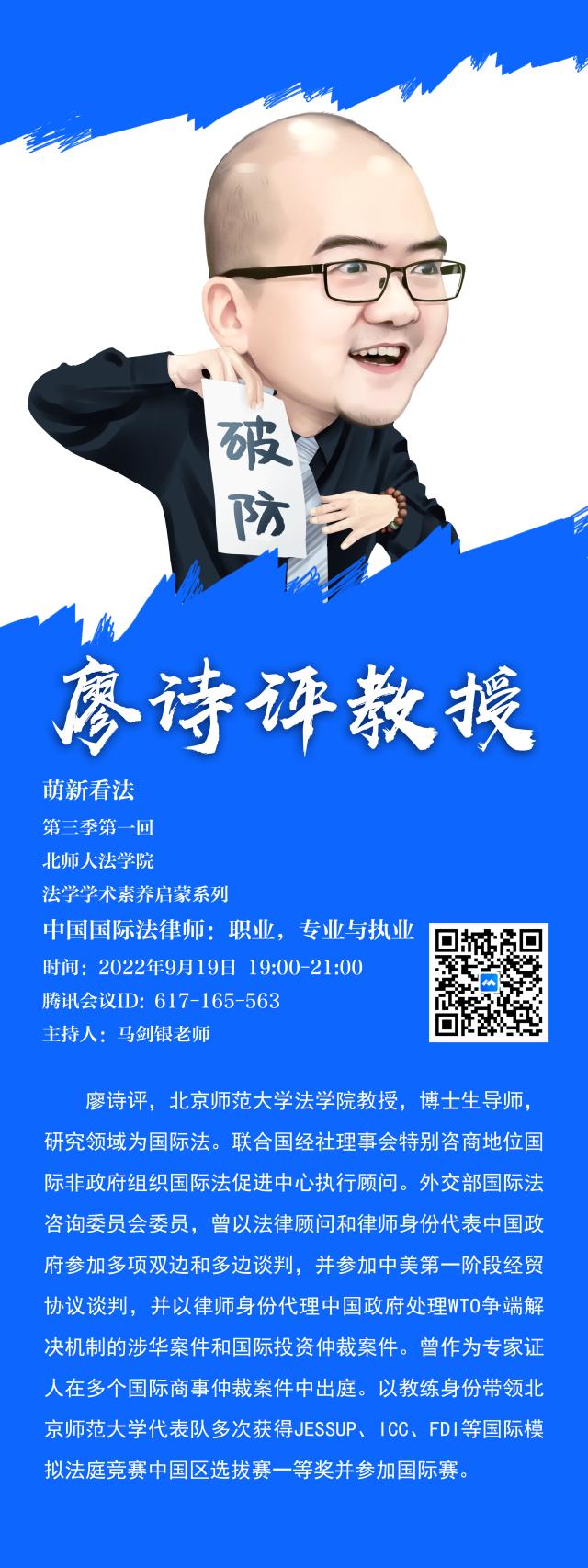 【09.19】萌新看法第三季第一回:中国国际法律师:职业,专业与执业/主讲人:廖诗评