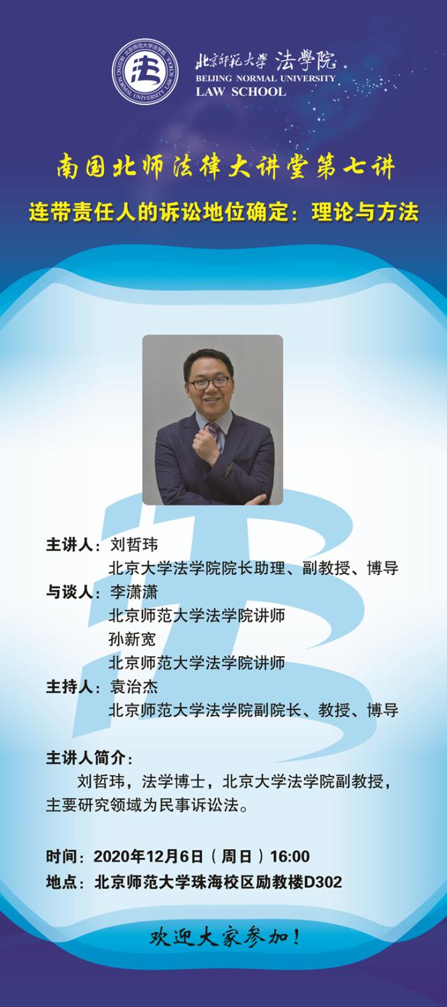 【12.06】南国北师法律大讲堂第七讲---连带责任人的诉讼地位确定:理论与方法/主讲人:刘哲玮
