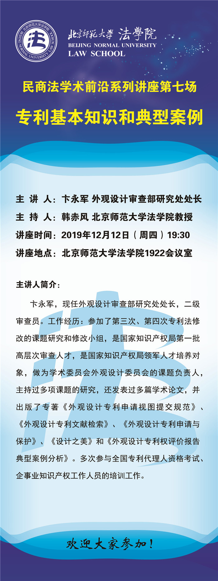 【12.12】民商法学术前沿系列讲座第七场/主讲人:卞永军