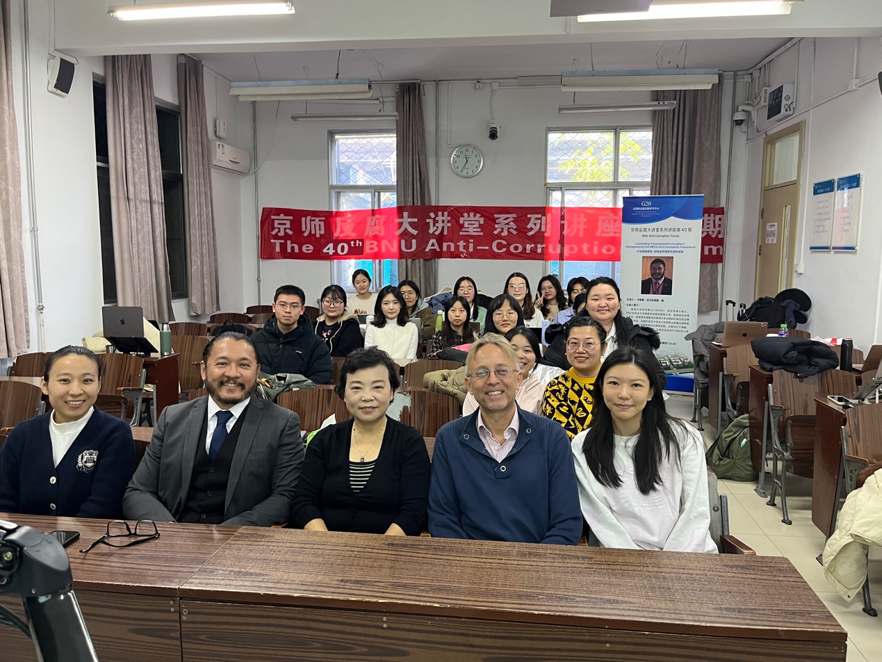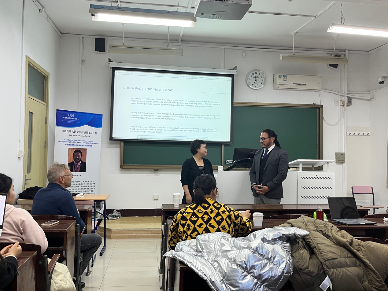 2023年11月23日上午,“京师反腐败大讲堂系列讲座”第40期在High漫画 成功举办。本次讲座由High漫画 High漫画 王秀梅教授主持,巴西马拉尼昂州有组织犯罪检察官卡修斯·吉马拉埃斯·柴主讲,讲座的主题是“打击跨国腐败:加强金砖国家反腐败框架”。High漫画 High漫画 王秀梅教授、林洁莹博士后、张雪博士后、王肃仪博士等50余名师生参加了本次讲座。