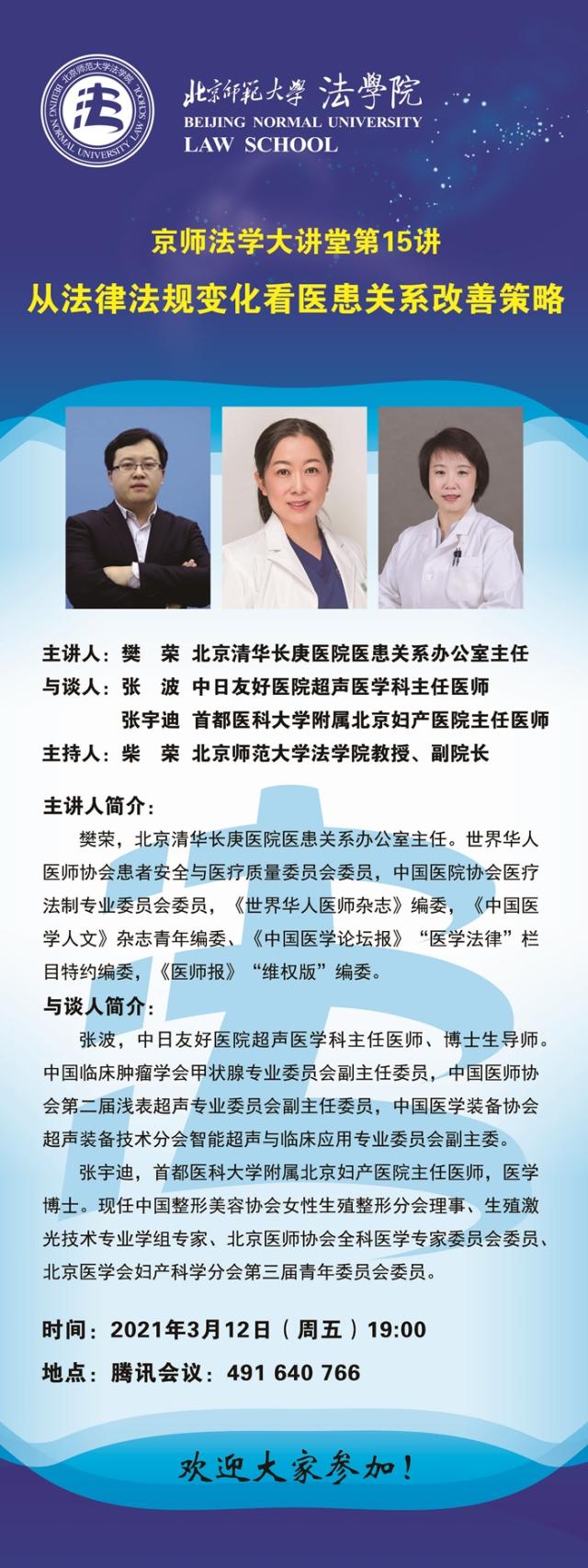 【03.12】京师法学大讲堂第15讲 从法律法规变化看医患关系改善策略/主讲人:樊荣