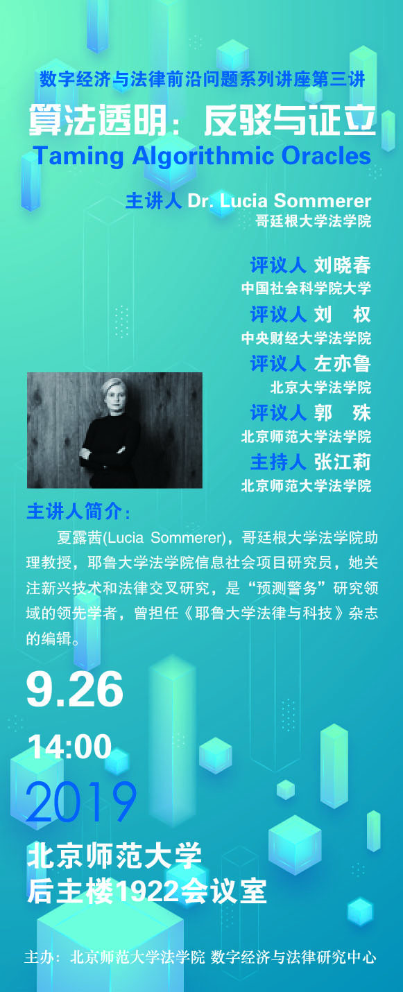 【09.26】数字经济与法律前沿问题系列讲座第三讲--算法透明:反驳与证立/主讲人:Dr. Lucia Sommerer