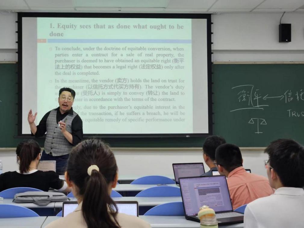 讲座伊始,周伟雄大律师以“Maxims of Equity(衡平法的格言)”为题,从香港衡平法体系、衡平法的一般原则和典型案例三个方面向同学们展开阐述。衡平法与基本法、普通法和成文法共同组成香港法律制度。周大律师介绍到,衡平法注重公平原则,比普通法更具灵活性,更着重考虑当事人的行为和良知。普通法与衡平法最大的区别在于,前者提供的济助方式(remedies)源自一般人应有的权利,而后者提供的济助方式源自酌情权。常见的衡平法济助方式包括禁制令(injunctions)或强制履行(specific performance)。周大律师表明,当权利受到侵害的当事人如果在普通法上得不到救济,衡平法就会干预并给予受害人救济,其中最典型的运用衡平法进行补偿的行为是信托(trust)。
