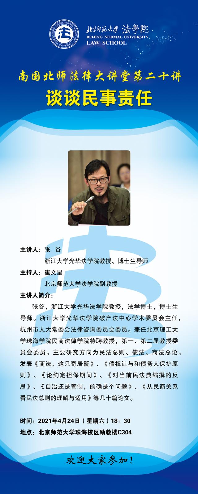 【04.24】南国北师法律大讲堂第二十讲——谈谈民事责任/主讲人:张谷