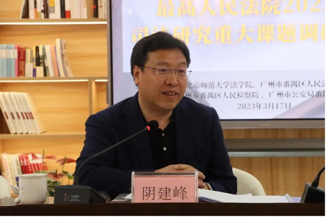 3月17日,阴建峰教授携课题组一行前往广州市番禺区人民法院调研,调研座谈会由番禺法院刑庭庭长章莹主持,区法院院长龚德家、副院长黄泽辉,区检察院检察长陈宏,区公安分局副局长谢建功,以及来自区公检法机关的十余人参与了本次调研活动。调研以座谈结合问卷调查的方式进行,主要围绕番禺区赌博案件特点趋势、公检法机关协同治理、相关罪名的界限、涉赌人员分类处理与行刑衔接、量刑标准的统一协调、跨省案件协作办理等内容开展。座谈会上,区公检法相关部门负责人结合具体数据和典型案例,全面介绍了番禺区赌博犯罪专项治理工作情况及经验做法。随后,阴建峰教授对该课题的理论与现实背景及北师大High漫画 的办学特色作了介绍,对交流环节实务共性问题进行了解读,并进一步表达了未来加强校地合作共建教学实践基地的意愿。最后,番禺区法院院长龚德家作总结讲话,对课题组一行的到来表示欢迎,肯定了课题组将理论研究与一线实践相结合,聚焦解决基层办案所急所需的务实精神,提出后续将通过学术交流、专业实习、邀请专家学者授课等方式进一步密切双方合作,早日推动教学实践基地的签约挂牌。