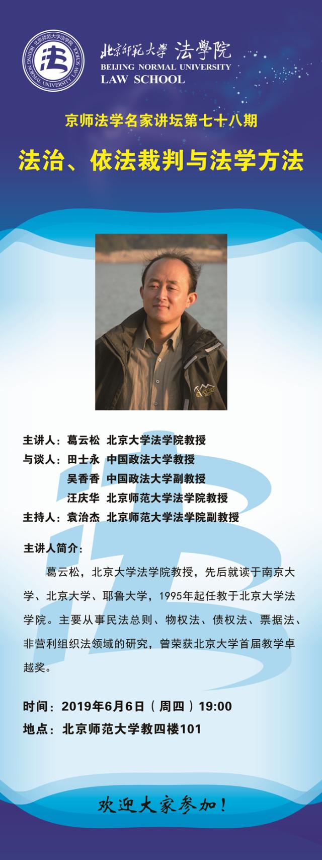 【06.06】京师法学名家讲坛第七十八期:法治、依法裁判与法学方法/主讲人:葛云松