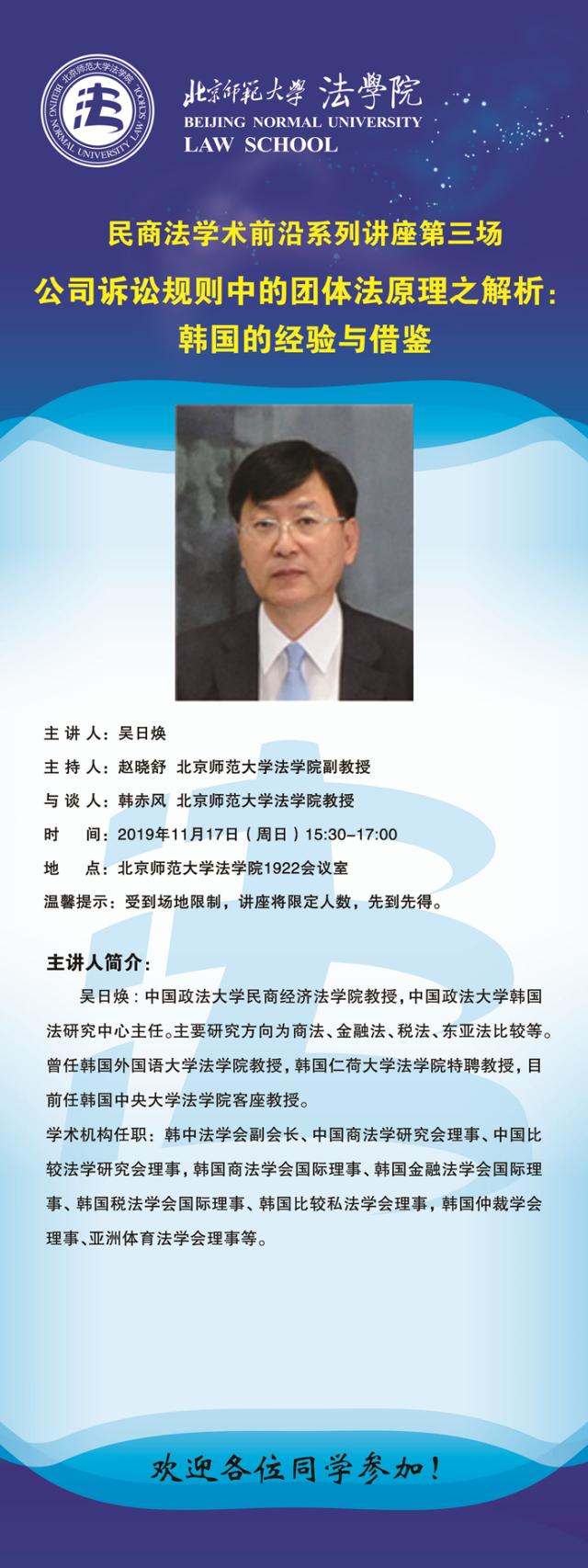 【11.17】民商法学术前沿系列讲座第三场/主讲人:吴日焕
