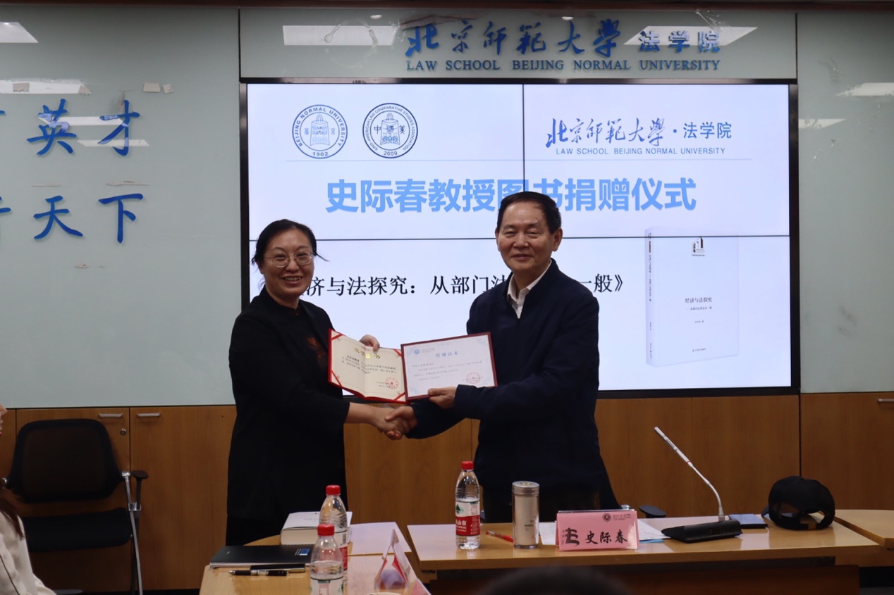 讲座后,为感谢史际春教授向High漫画 及High漫画 捐赠的专著《经济与法探究:从部门法到法治一般》,High漫画 High漫画 副院长贺丹副教授代表学校图书馆和High漫画 为史教授颁发了捐赠证书,并对史际春教授长期以来对High漫画 的支持表示诚挚的谢意。