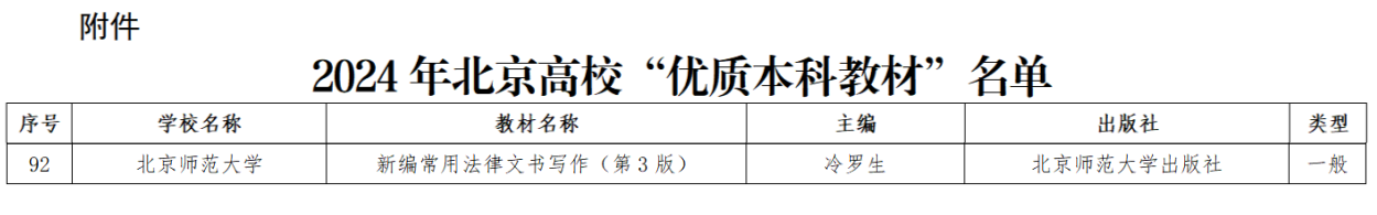 近日,北京市教育委员会发布了《关于公布2024年优质本科教材遴选结果的通知》(京教函〔2024〕536号)和《关于公布2024年优质本科教案课件评选结果的通知》(京教函〔2024〕537号)。我院1部教材获评“2024年北京高校优质本科教材”、1门课程课件获评“2024年北京高校优质本科课件”。