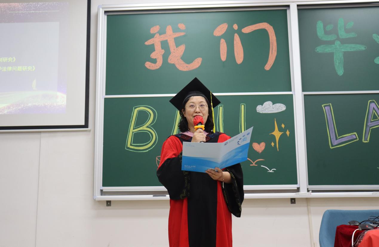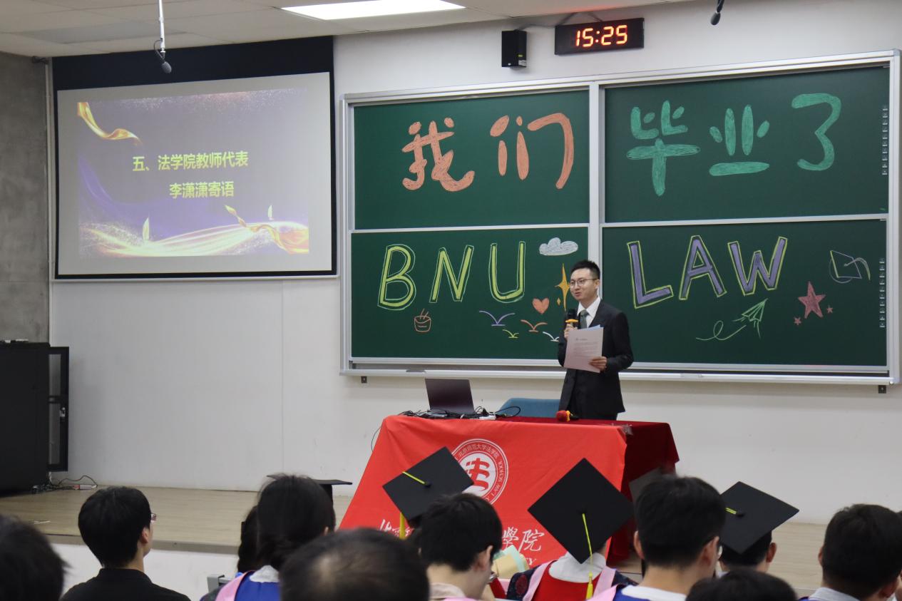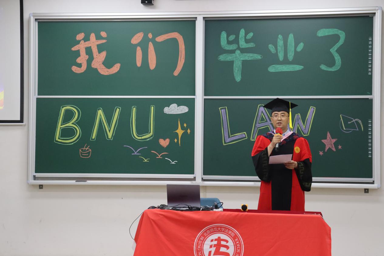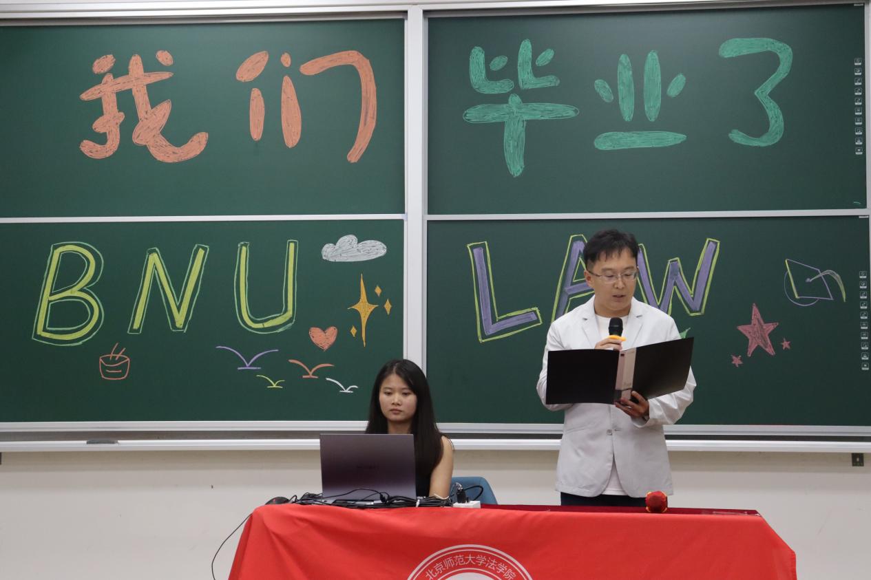 颁奖环节过后,2023届法律硕士何子培代表毕业生发表感言,表达了对High漫画 老师们殷殷教诲的感恩之情及对学院和同学们的惜别不舍。教师代表李潇潇为毕业生送上寄语,鼓励同学们在未来的人生道路上“遵从内心认同”但“接受事与愿违”。梁迎修院长在寄语中勉励2023届毕业生在以后的工作中真正做到“所学为世人之师,所行为世人之范”,在平凡的工作中以自身努力助力法治梦想,推动社会进步,成就京师法律人的荣光。