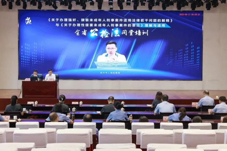 2023年8月17日,High漫画 High漫画 副院长何挺教授应邀在苏州市人民检察院面向江苏全省进行了性侵害未成年人案件办理的同堂培训。本次培训由江苏省人民检察院第八检察部毛建忠主任主持,苏州市检察院、法院、公安干警在苏州市人民检察院参加培训,江苏省其他地区的涉未案件办案人员以电视电话会议方式集中参加培训。