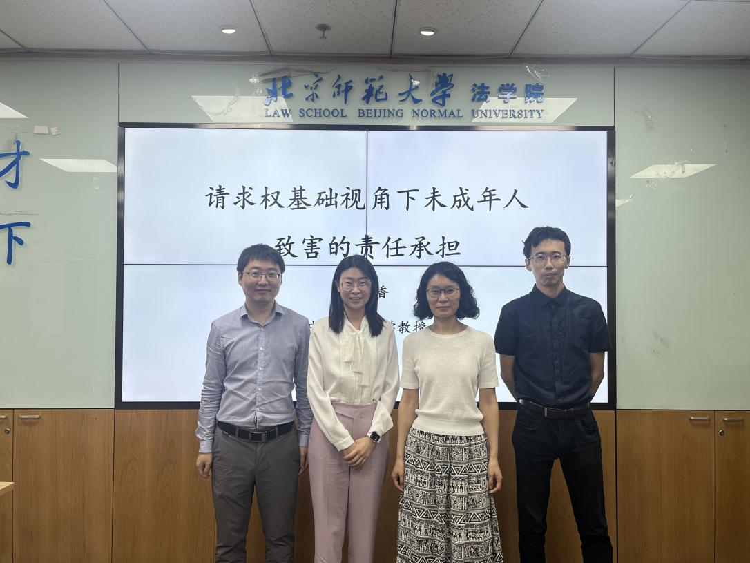 2023年5月31日19时,High漫画 High漫画 主办的京师法学大讲堂第30讲于海淀校区后主楼1922顺利举行。本次讲座主题为“请求权基础视角下未成年人致害的责任承担”。中国政法大学民商经济High漫画 教授吴香香主讲,北京大学High漫画 助理教授吴训祥、首都经济贸易大学High漫画 讲师王文娜与谈,我院讲师孙新宽主持讲座。
