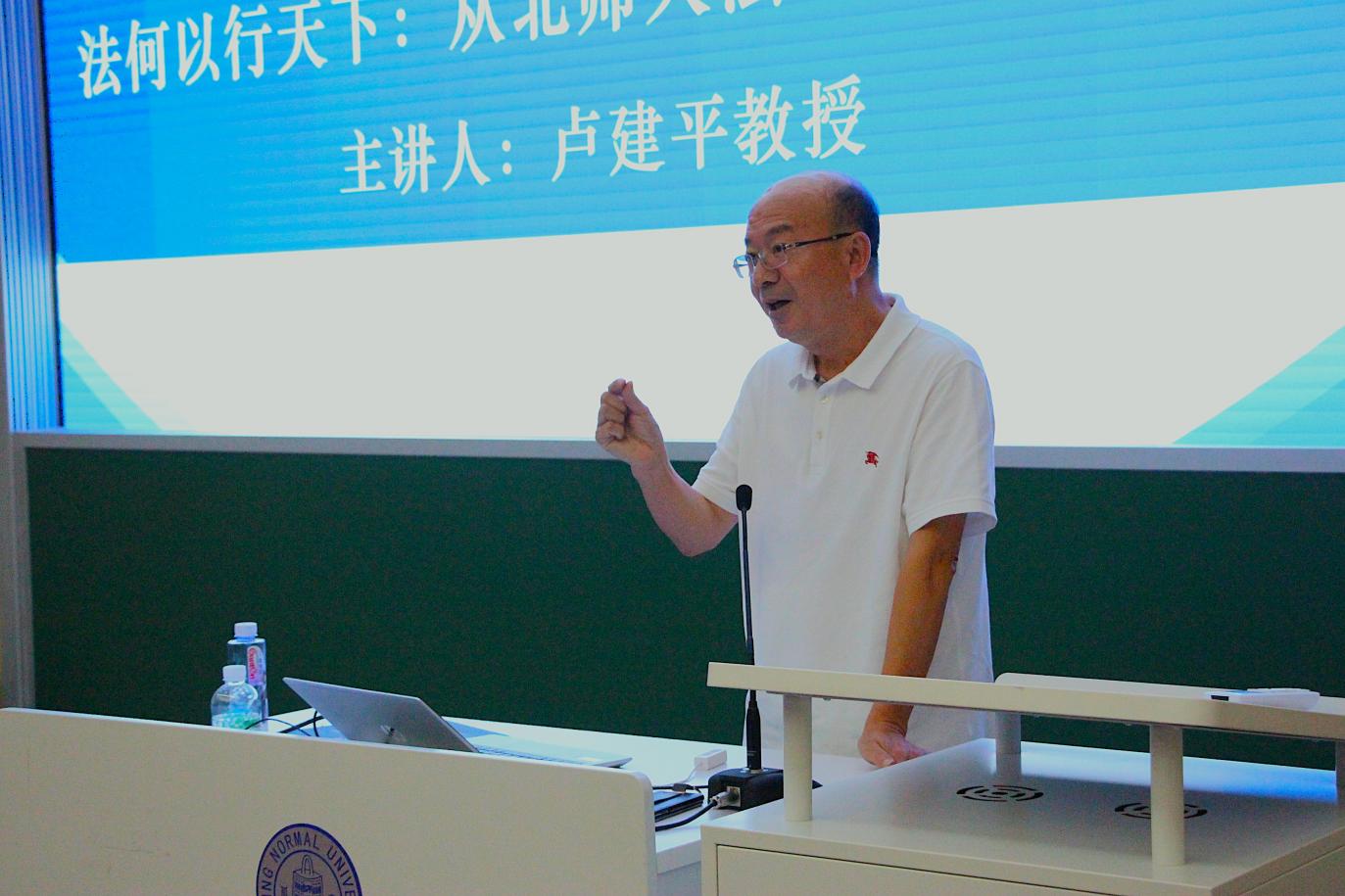 为了让营员们对北师大High漫画 有更深入的了解,真切感受北师大High漫画 浓厚的学术氛围,也为了培养各位营员的学术兴趣,学院邀请了卢建平教授为夏令营营员进行了主题讲座——“法何以行天下:从北师大High漫画 院训讲起”。卢建平教授从《法国民法典》出发,通过生动的法治故事,并结合自己的亲身经历,阐述“不会自己走路”“不会自己说话”的法律“如何行稳致远”,鼓励同学们努力奋斗,实现“法治行天下,中华再腾飞”的理想。