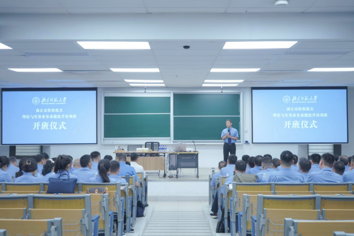 的发展历程,以及北师珠法治发展研究中心的现状和发展潜力,同时代表学院表达了对商丘市检察官们的热烈欢迎。随后商丘市人民检察院党组副书记、副检察长赵伟锋同志做动员讲话,希望学员们珍惜此次难得的学习机会,在百年学府沉浸式学习,努力提升自己的理论水平、专业知识与技能。