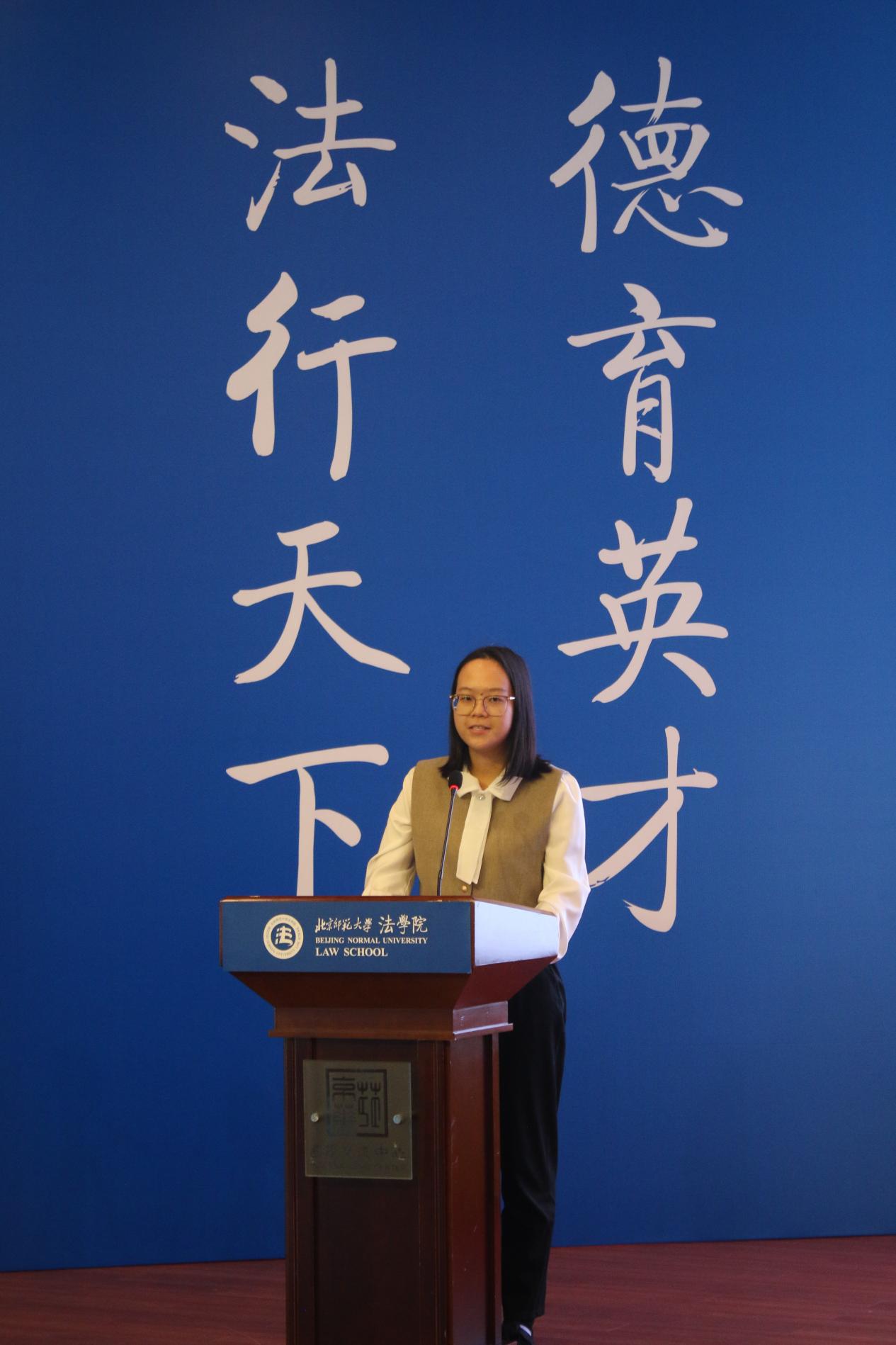 作为新生代表的罗一鸣同学向大家阐述了她对法学生使命与担当的思考。第一,大学之道,贵在求知,我们怀揣梦想而来,就应把握住研究生这一重要的人生积累阶段,扎实学识、精进业务。第二,时代向前,青春向上,我们有活力、有朝气,更应该去探索、去创造。第三,心之所向,路之所往,现在的我们,应当理解好时代责任的意义、处理好小我与大我的关系,以家国梦想引领青春航向,尽快明确个人发展目标,与祖国同心同行。
