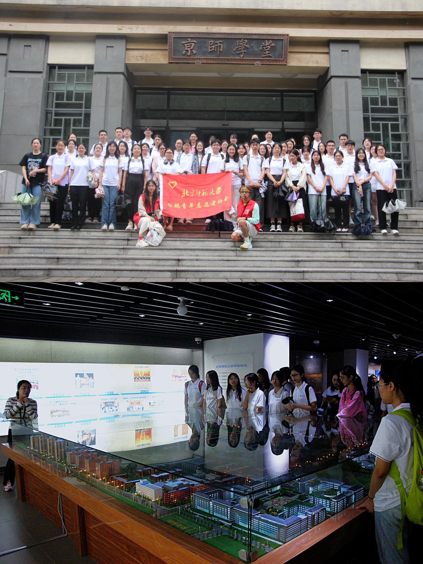 开营仪式结束后,学院为营员们安排了参观校园与北师大形象陈列馆的活动。邀请了白鸽青年志愿者协会和校史研究室工作人员为营员们进行专业导览和讲解。