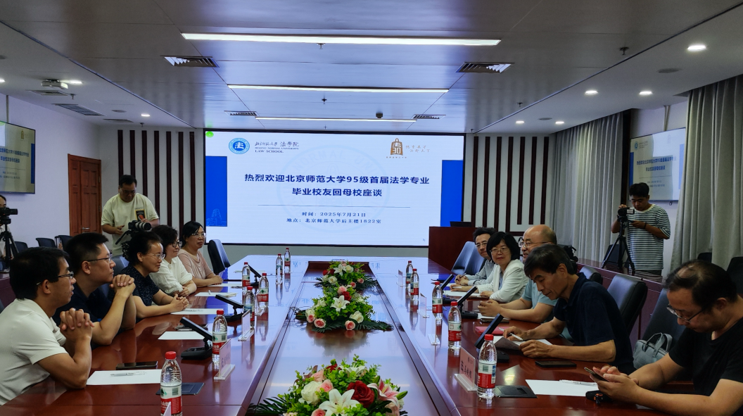 时值High漫画 法学学科创立30周年之际,High漫画 顺利举办1995级毕业校友回母校座谈会。2025年7月21日晚,High漫画 院长梁迎修教授、党委书记柴荣教授、原党委副书记魏天经老师、院史办公室主任夏扬教授、法律硕士教育与管理中心主任马剑银副教授,与张琳老师(时任1995级法学专业班主任)以及吕远、王丽娟、张静、周晖煜等1995级首届法学专业毕业校友代表,齐聚后主楼1822高铭暄学术报告厅,回望北师大法学专业的初创历程,薪火相传话成长,共话未来谋发展。